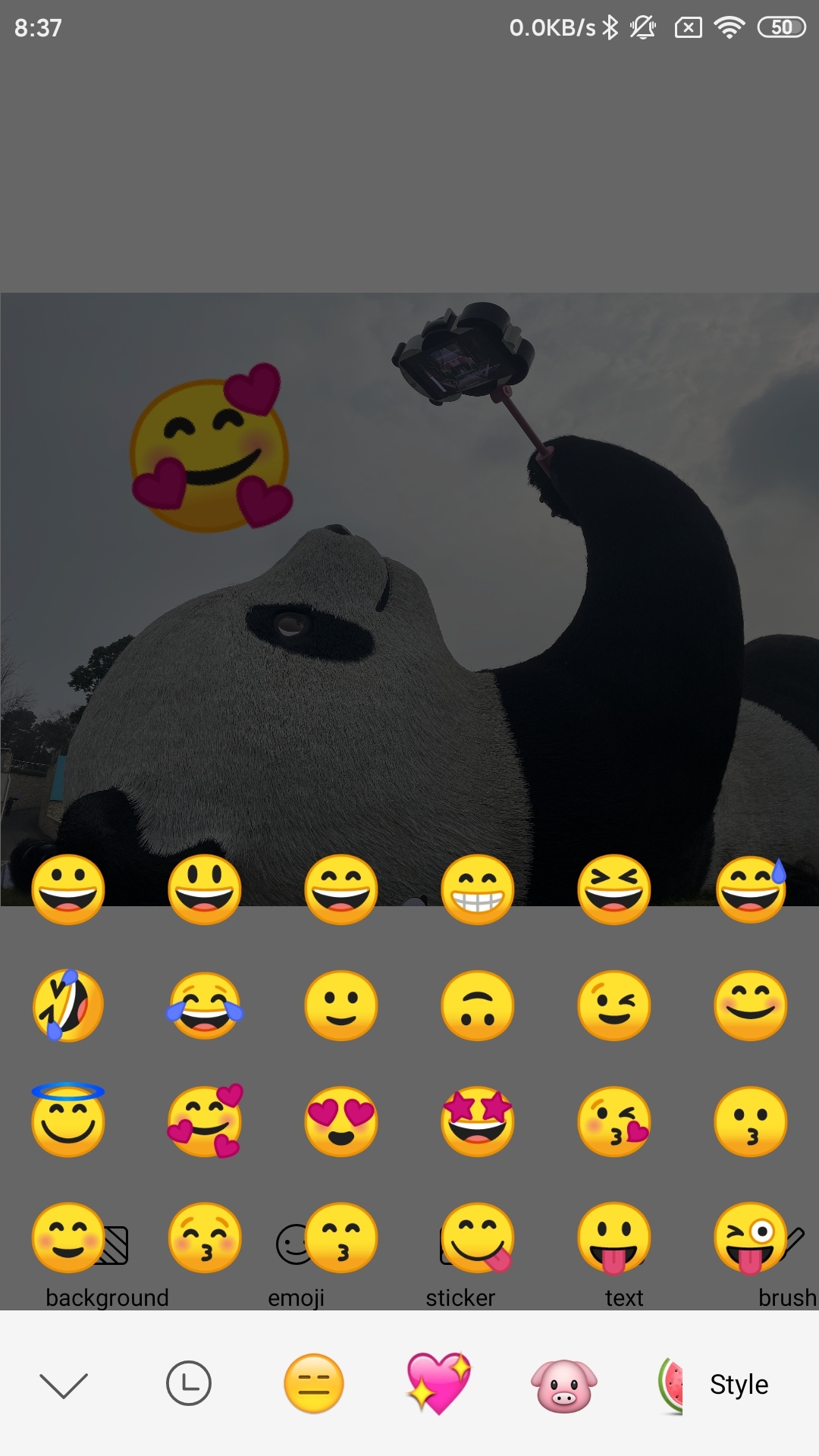🤗 [Editor] Built-in massive emojis, easily switch between various emoji styles, support combining emoji expressions, custom stickers, filters, graffiti, and adding text.